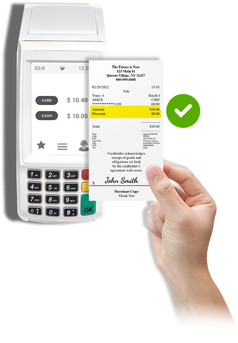 The discount for their cash payment would appear clearly on their receipt.